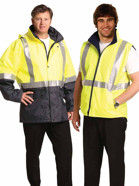 Mens Hi-Vis Two Tone Rain Proof Jacket With Quilt Lining