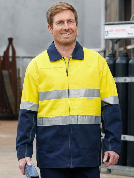 Mens Hi-Vis Cotton Jacket With Reflective Taping