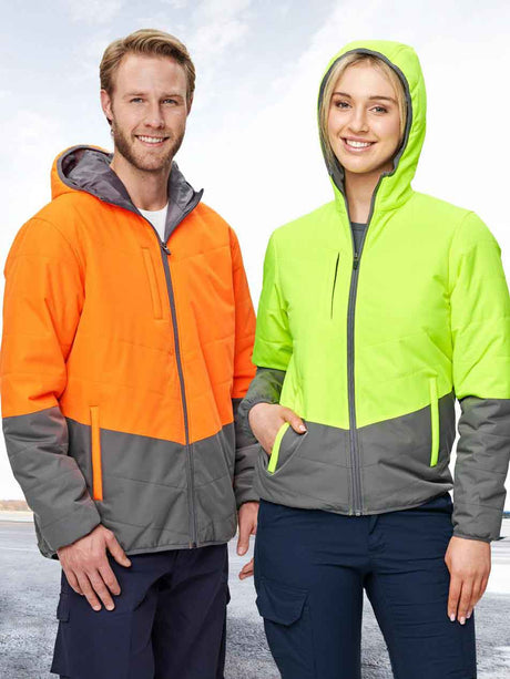 Unisex Hi-Vis Modern Styling Hooded Puffer Jacket