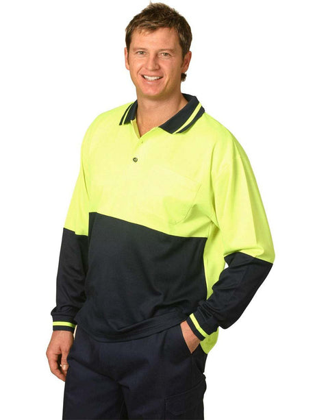Mens Hi-Vis Long Sleeve Cotton Back Safety Polo