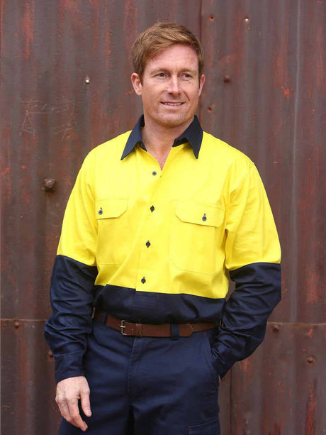 Mens Hi-Vis Cotton Drill Long Sleeve Shirt