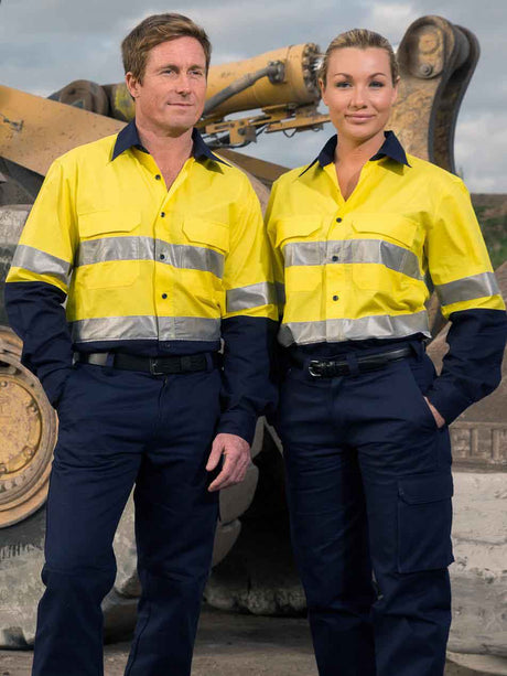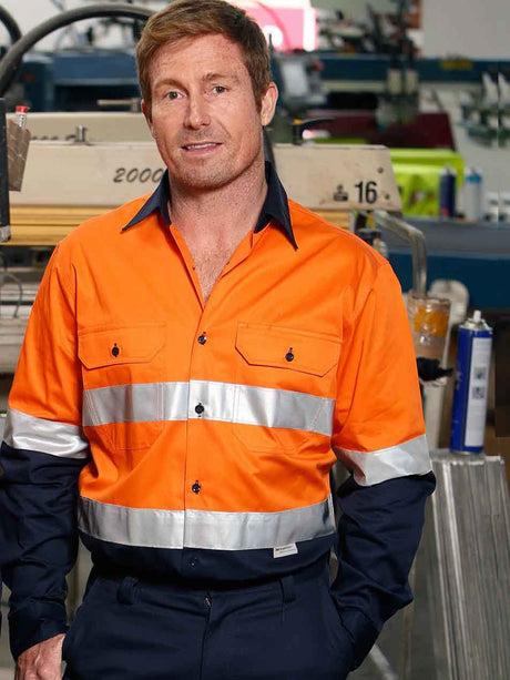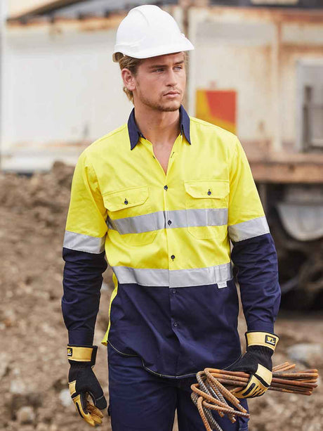 Mens Long Sleeve Recycle Taped Two Tone Hi Vis Drill Shirt