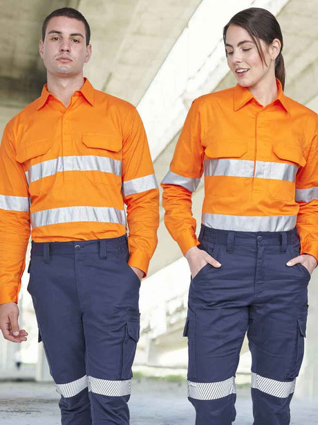Unisex Hi-Vis Cool Breeze Closed Front Long Sleeve Work Shirt With Perforated Tape