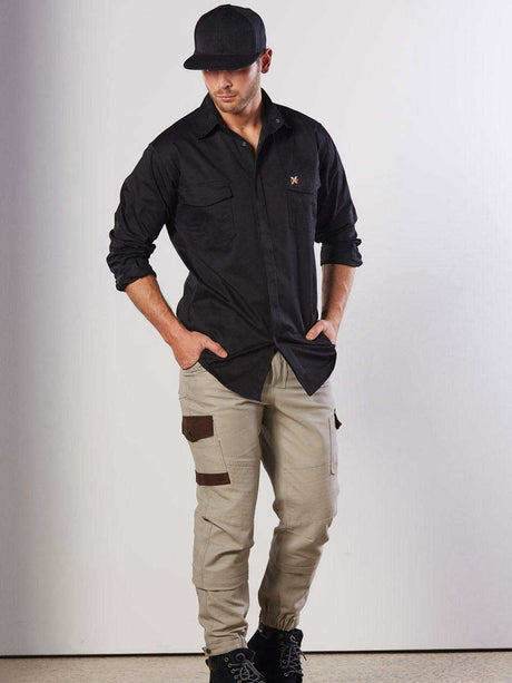 Mens Stretch Work Shirt With Flap Pockets