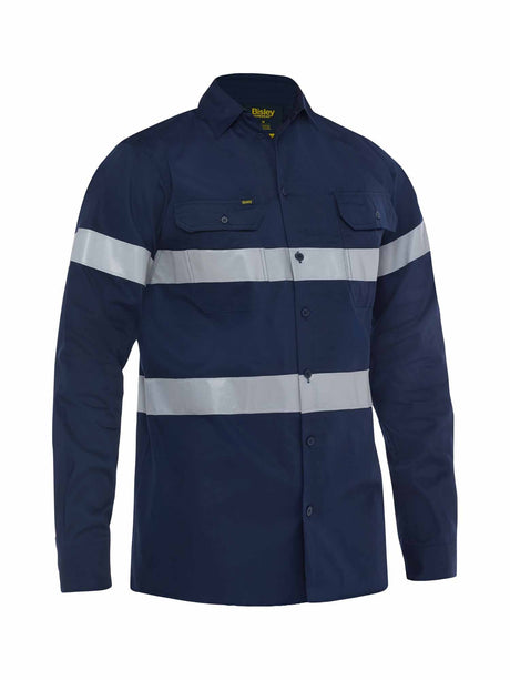 Mens Cotton Drill Long Sleeve Shirt With Taping