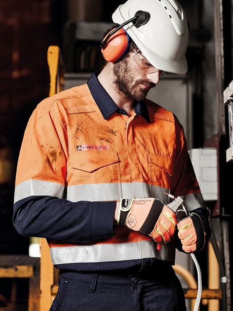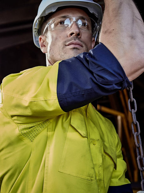 Mens Hi Vis Spliced Industrial Shirt - Shoulder Taped