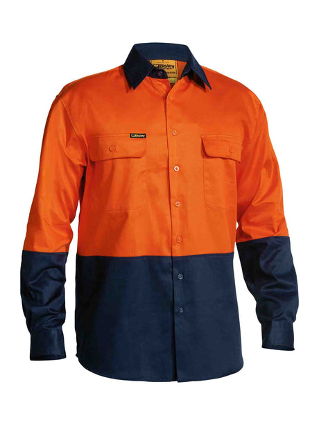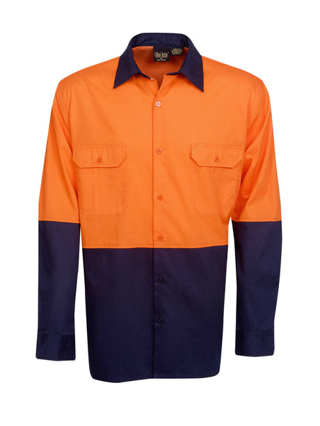 Hi Vis Long Sleeve Two Tone Cotton Drill Shirt With Taping