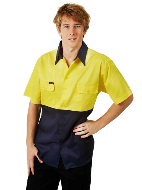 Hi Vis Short Sleeve Two Tone Cotton Twill Shirt With Taping