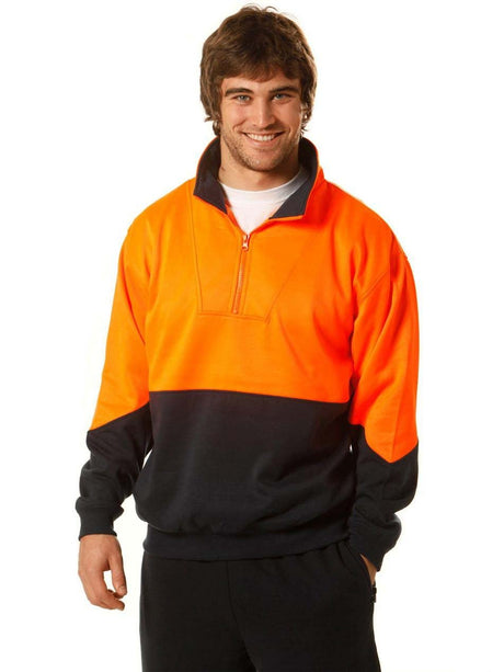 Mens Hi-Vis Two Tone Cotton Fleecy Sweat With Reflective Taping