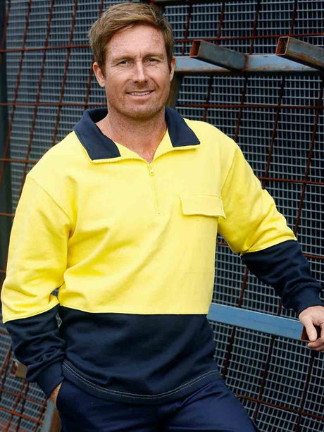 Mens Taped Hi Vis 1/4 Zip Fleece Pullover with Sherpa Lining