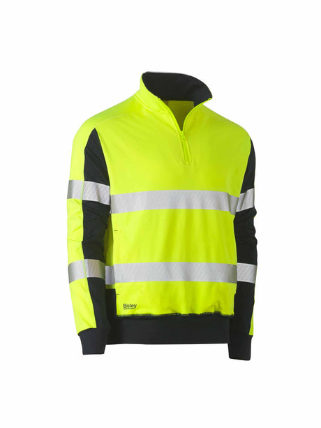 Mens Taped Two Tone Hi Vis Contrast Stretchy 1/4 Zip Pullover