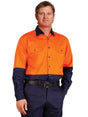The Australian Industrial Wear Mens Hi-Vis Cotton Twill Long Sleeve Shirt is available in two colours in a large range of sizes.