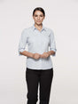 The Aussie Pacific Bayview Ladies 3/4 Sleeve Shirt is a classic slim fit dress shirt constructed from a woven corded twill stripe cotton and polyester fabric.