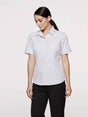 The Aussie Pacific Bayview Ladies Short Sleeve Shirt is a classic dress shirt constructed from a woven corded twill stripe cotton and polyester fabric.