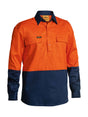 The Bisley Mens Long Sleeve Hi Vis Closed Front Drill Contrast Shirt is constructed from 100% cotton and is available in three colours in a variety of sizes.