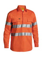 The Bisley Mens Long Sleeve Taped Hi Vis Closed Front Drill Shirt is constructed from 100% cotton and is available in orange.