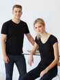 The Biz Collection Ladies Viva Tee is a blank v neck tee with elastane stretch fabric. It is available in black in a variety of sizes.