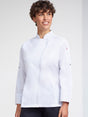 The Biz Collection Womens Alfresco Long Sleeve Chef Jacket is a functional and comfortable chef jacket that is constructed from a light weight polyester and cotton blend and features a concealed front zip and pockets on the sleeves.
