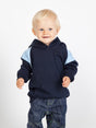 The Ramo Kids Shoulder Contrast Panel Hoodie is a stylish contrast panel hoodie that is constructed from a cotton and polyester blended fleece and features a kangaroo pocket.