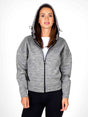 The Ramo Ladies/ Junior Space Hoodie is a premium full zip hoodie that is constructed from a cotton, polyester and spandex blend that features a vertical zip pocket, high funnel neck and hood lining.