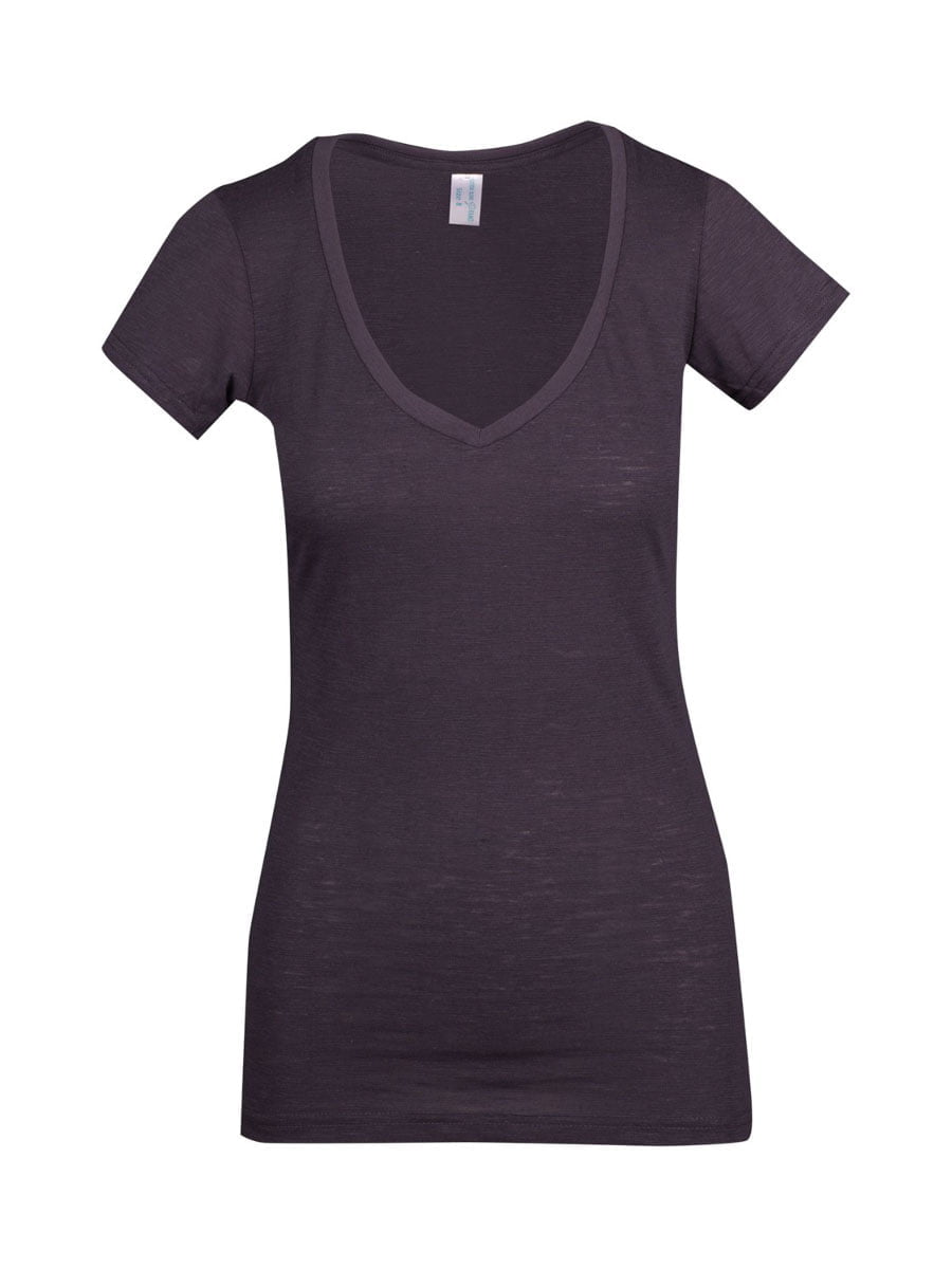 The Ramo Ladies Raw Cotton Wave V-Neck Tee is a slim fit t-shirt that is constructed from a cotton and polyester blend fabric and provides the best result for distressed prints. It is available in a variety of colours and sizes.